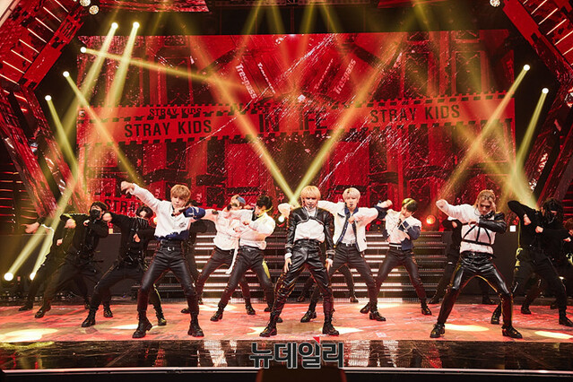 아이돌그룹 스트레이키즈가 31일 오후 경기 고양시 MBC 드림센터에서 열린 '2020 MBC 가요대제전 : THE MOMENT'에서 무대를 선보이고 있다. 가요대제전은 9시부터 생방송 된다. (사진=MBC)