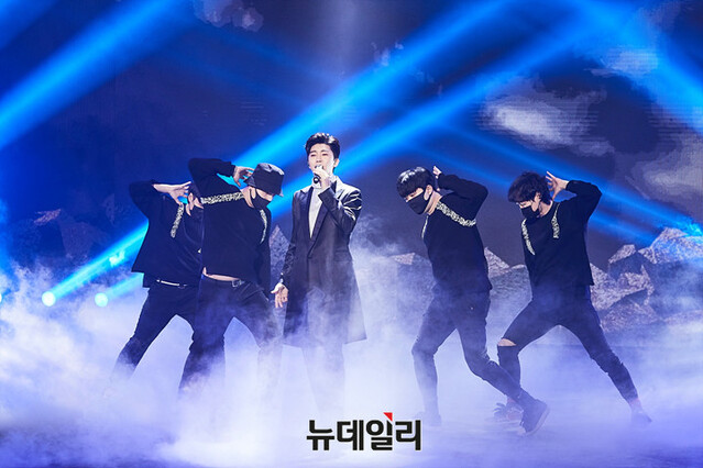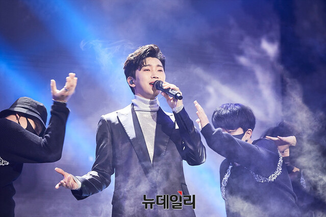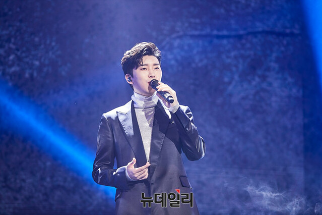 가수 임영웅이 31일 오후 경기 고양시 MBC 드림센터에서 열린 '2020 MBC 가요대제전 : THE MOMENT'에서 무대를 선보이고 있다. 가요대제전은 9시부터 생방송 된다. (사진=MBC)