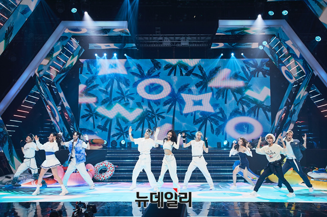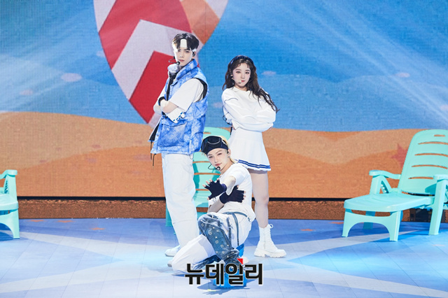 주연(더보이즈)X리아(ITZY)X한(Stray Kids), 영훈(더보이즈)X우기((여자)아이들)X필릭스(Stray Kids), 현진(Stray Kids)X원영(아이즈원)X현재(더보이즈)가 31일 오후 경기 고양시 MBC 드림센터에서 열린 '2020 MBC 가요대제전 : THE MOMENT'에서 무대를 선보이고 있다. 가요대제전은 9시부터 생방송 된다. (사진=MBC)