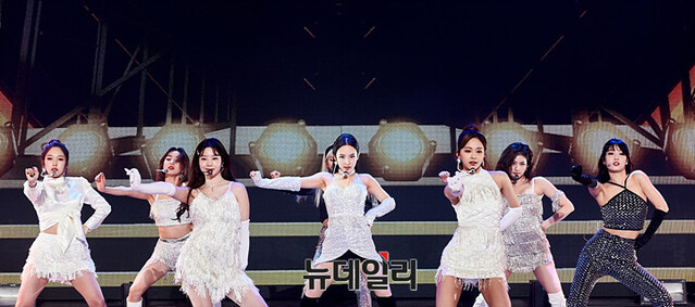 걸그룹 트와이스가 31일 오후 경기 고양시 MBC드림센터에서 열린 '2020 MBC 가요대제전 : THE MOMENT'에서 무대를 선보이고 있다. 가요대제전은 9시부터 생방송 된다. (사진=MBC)