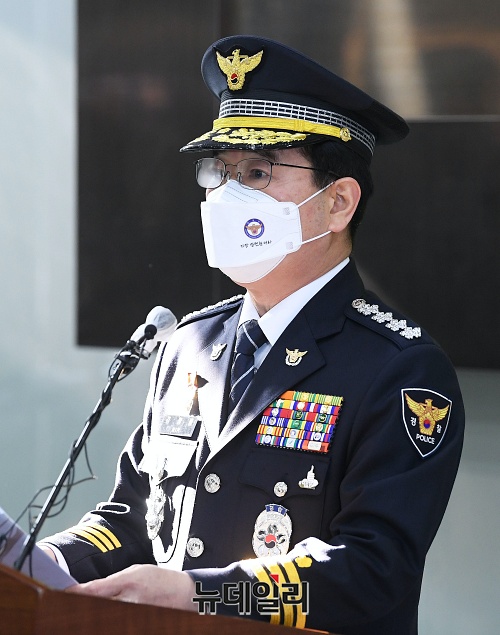 김창룡 경찰청장이 4일 서울 서대문구 경찰청에서 열린 국가수사본부 현판식에서 인사말을 하고 있다.