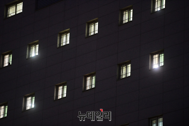서울동부구치소 내 코로나19 확산세가 이어지고 있는 5일 오전 동이트면서 구치소 건물이 드러나고 있다. 확진자 1,000여명이 나온 동부구치소는 이날 직원과 수용자 1,300여 명을 대상으로 6차 전수검사에 나선다.