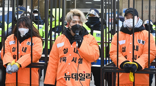 이들은 "3차 대유행이 시작되고 정부는 우리의 희생을 당연한 것처럼 여기며 또다시 실내체육시설에 집합금지 행정명령을 내렸다"며 실내체육시설 고위험시설 지정 철회, 제한적 운영 허용, 영업금지 조치 근거 제시, 적극적 피해보전 등을 요구했다.