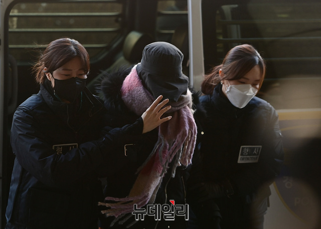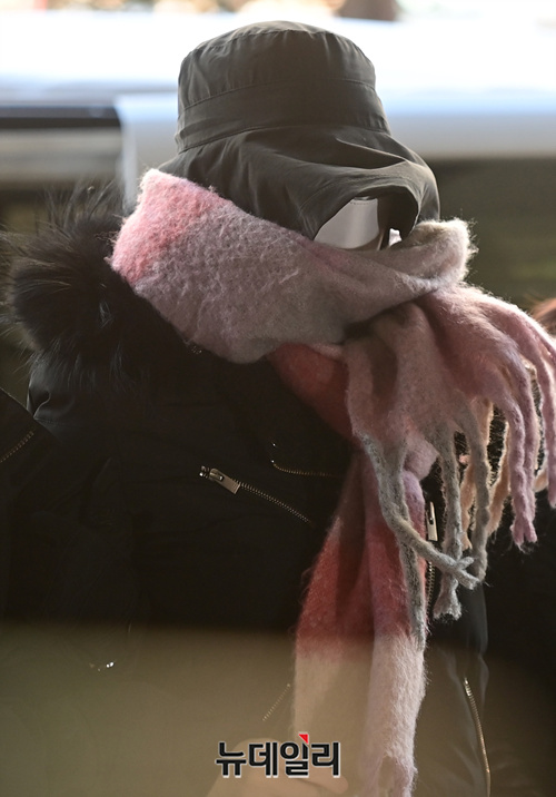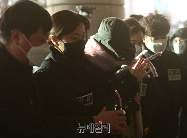 집행유예 기간 중 마약을 투약한 혐의를 받고 있는 황하나 남양유업 창업주 외손녀가 7일 오전 서울 마포구 서울서부지법으로 영장실질심사를 받기 위해 호송차량에서 내리고 있다.