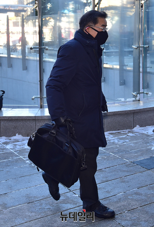 이헌 변호사가 7일 오후 서울 서초구 서울행정법원에서 고위공직자범죄수사처장(공수처장) 후보 추천 과정에서 야당 측이 공수처장 후보자 추천과 의결 효력을 정지해달라고 제기한 집행정지 심문에 입장하고 있다.