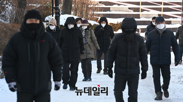 [포토] 계속되는 한파에 롱패딩 입고 운동하는 시민들