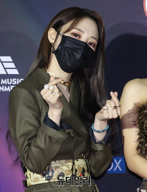 걸그룹 마마무가 9일 오후 경기 고양시 킨텍스에서 비대면으로 진행된 '제 35회 골든디스크 어워즈'에서 포토타임을 갖고 있다.