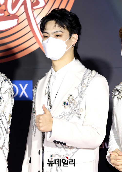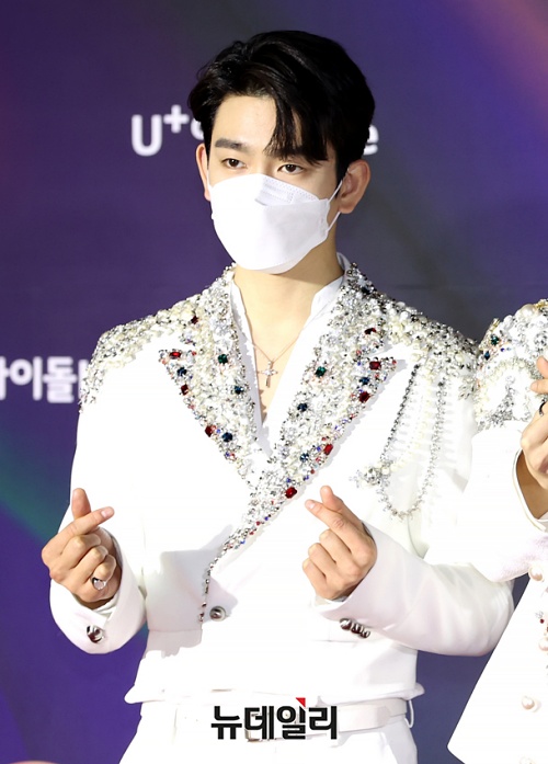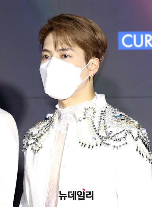 아이돌그룹 갓세븐이 10일 오후 경기 고양시 킨텍스에서 비대면으로 진행된 '제 35회 골든디스크 어워즈'에서 포토타임을 갖고 있다.