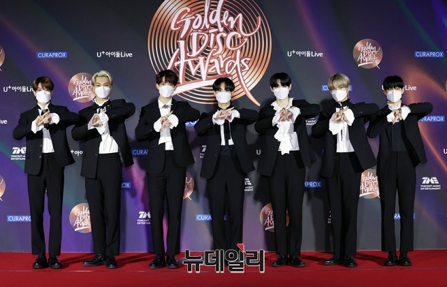 아이돌그룹 엔하이픈이 10일 오후 경기 고양시 킨텍스에서 비대면으로 진행된 '제 35회 골든디스크 어워즈'에서 포토타임을 갖고 있다.