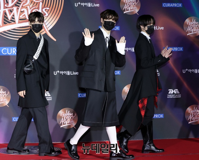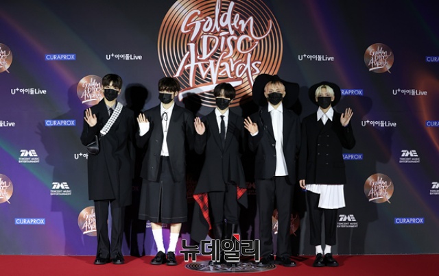아이돌그룹 투모로우바이투게더가 10일 오후 경기 고양시 킨텍스에서 비대면으로 진행된 '제 35회 골든디스크 어워즈'에서 포토타임을 갖고 있다.