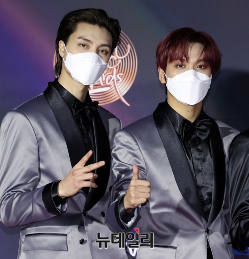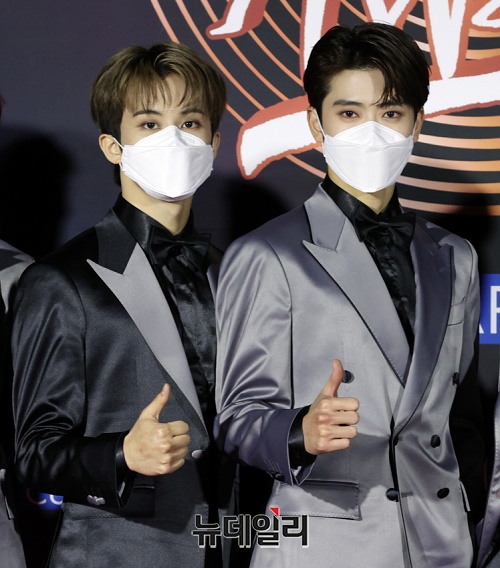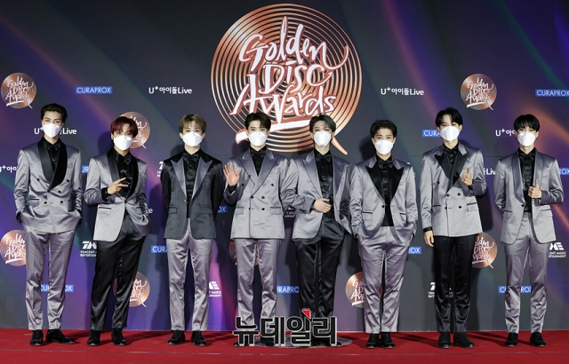 아이돌그룹 NCT127이 10일 오후 경기 고양시 킨텍스에서 비대면으로 진행된 '제 35회 골든디스크 어워즈'에서 포토타임을 갖고 있다.