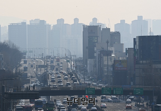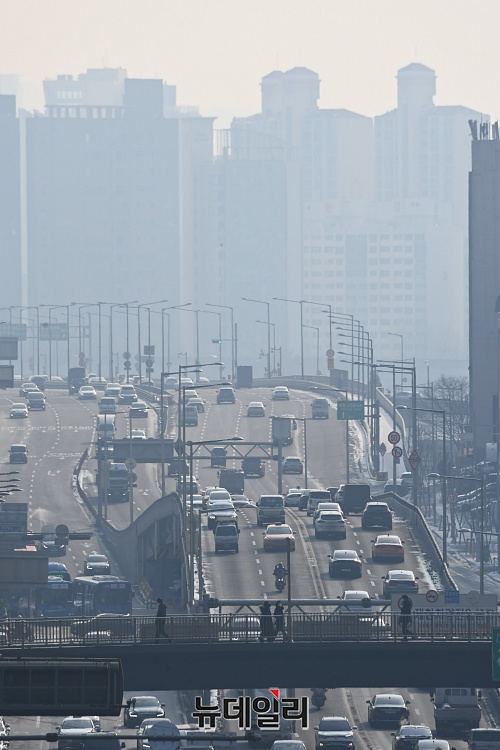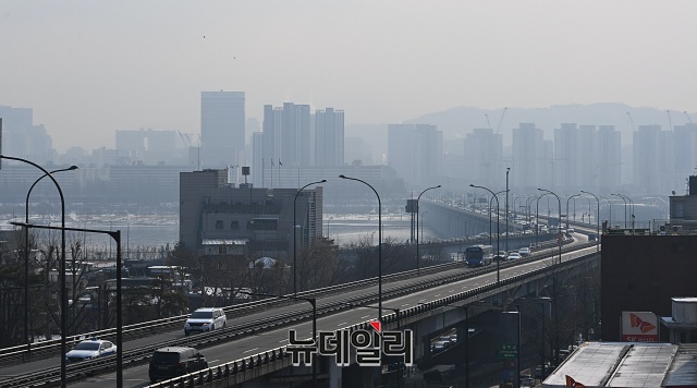 [포토] 추위 풀리니 미세먼지 기승.. 뿌옇게 보이는 서울도심