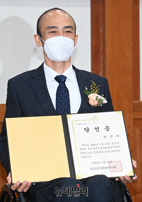 [포토] 당선증 교부 받은 정진완 대한장애인체육회장