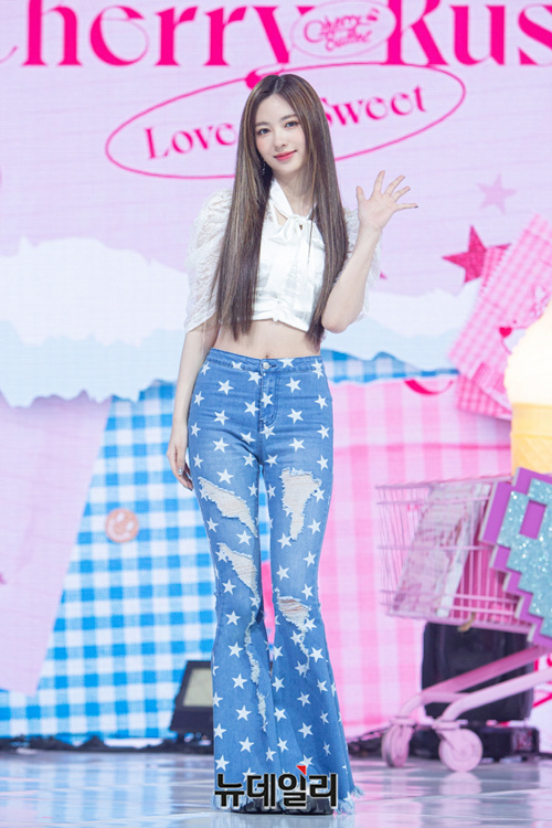 체리블렛 지원이 20일 오후 온라인으로 진행된 첫 번째 미니앨범 '체리 러쉬(Cherry Rush)' 발매 기념 쇼케이스에서 포토타임을 갖고 있다.