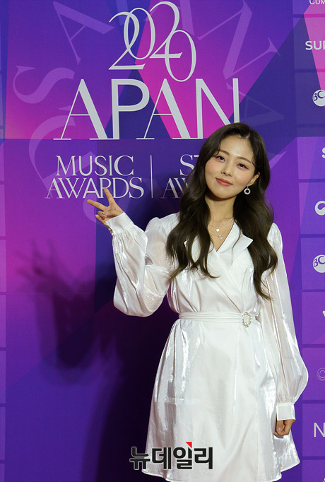 가수 HYYN(박혜원)이 24일 오후 진행된 '2020 APAN MUSIC AWARDS' 레드카펫 행사에서 포즈를 취하고 있다.