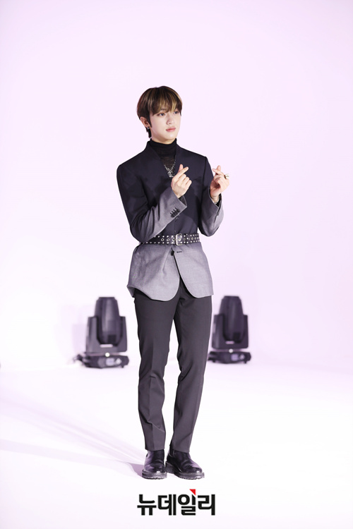아이돌그룹 골든차일드 멤버 봉재현이 25일 온라인으로 열린 5번째 미니앨범 'YES.' 쇼케이스에서 포토타임을 갖고 있다.