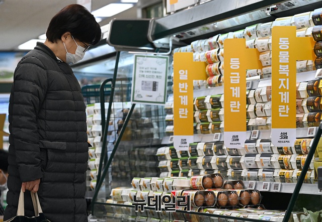 서울 시내 한 대형마트를 방문한 고객이 26일 오후 계란코너에서 계란을 살펴보고 있다.