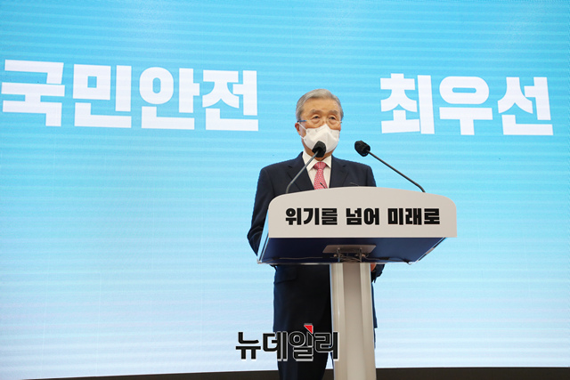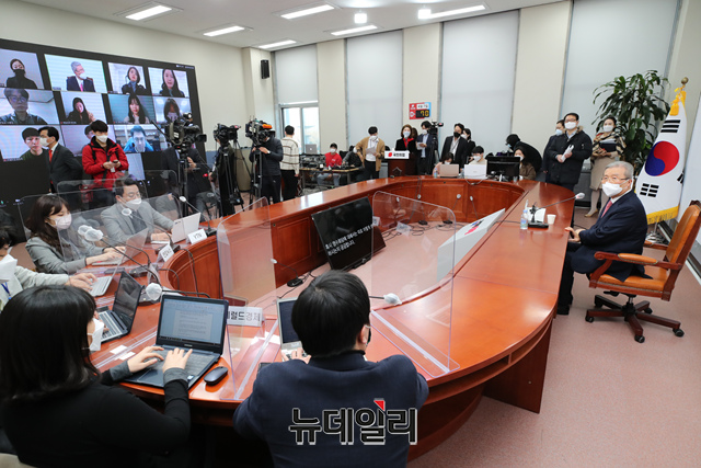 김종인 국민의힘 비상대책위원장이 27일 오전 국회에서 온·오프라인 방식으로 신년 기자회견을 갖고 있다. (사진=국민의힘)