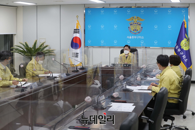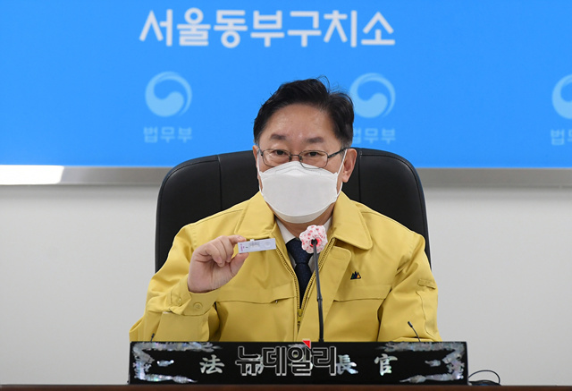 박범계 신임 법무부 장관이 28일 신종 코로나바이러스 감염증(코로나19) 집단감염 사태가 발생한 서울동부구치소를 방문해 인사말을 하고 있다.