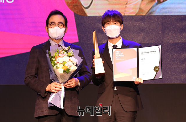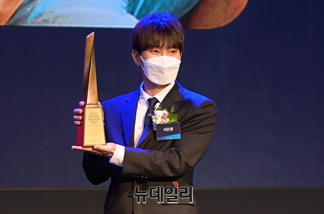 그룹 비투비(BTOB) 멤버 서은광이 28일 오후 온라인으로 진행된 '2021 대한민국 퍼스트 브랜드 대상'에 참석해 포토타임을 갖고 있다. (사진=한국소비자포럼)