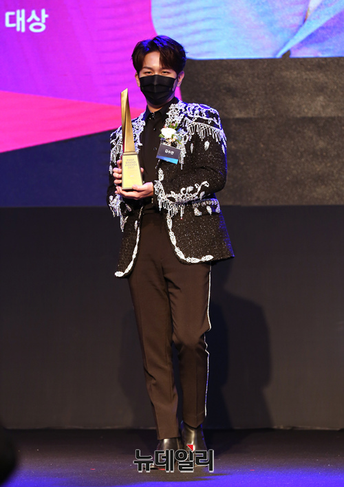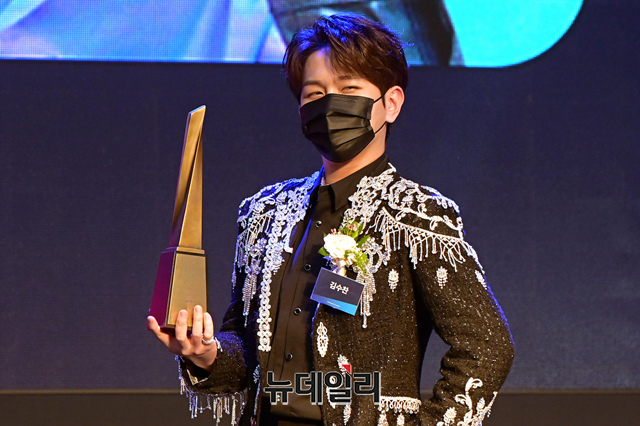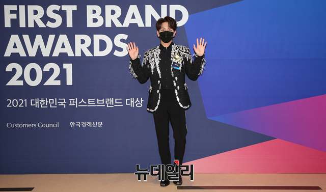 가수 김수찬이 28일 오후 온라인으로 진행된 '2021 대한민국 퍼스트 브랜드 대상'에 참석해 포토타임을 갖고 있다. (사진=한국소비자포럼)