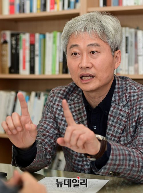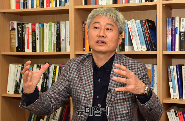 4.7 서울시장 보궐선거에 출마선언한 김근식 송파미래연구소장이 28일 오후 서울 송파구의 사무실에서 뉴데일리와 인터뷰를 갖고 있다. 김 후보는 "이번 서울시장 선거는 1년 뒤 있을 대선에서 정권교체의 밑자락이 돼야 한다"며 "문재인 정권과 단호하게 싸울 수 있는 검투사 시장이 될 것"이라고 밝혔다.
