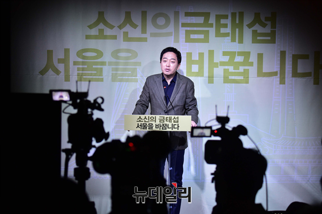 더불어민주당을 탈당한 금태섭 전 의원이 31일 서울 마포구 서교동 프리즘홀에서 서울시장 보궐선거 출마를 선언을 마친 후 기자들의 질문에 답하고 있다.
