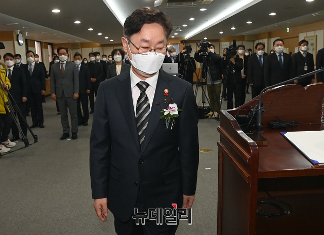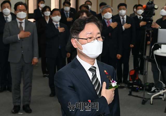박 장관은 취임식에서 "우리는 이제 막 국민의 명령인 검찰개혁을 위한 한걸음을 내딛었을 뿐"이라며 "권력기관 개혁과제를 더욱 가다듬고 발전시켜 나가야 한다"고 말했다. (경기 과천=권창회 기자)