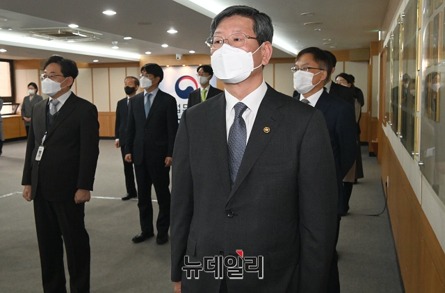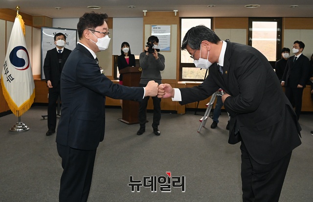 박 장관은 취임식에서 "우리는 이제 막 국민의 명령인 검찰개혁을 위한 한걸음을 내딛었을 뿐"이라며 "권력기관 개혁과제를 더욱 가다듬고 발전시켜 나가야 한다"고 말했다. (경기 과천=권창회 기자)