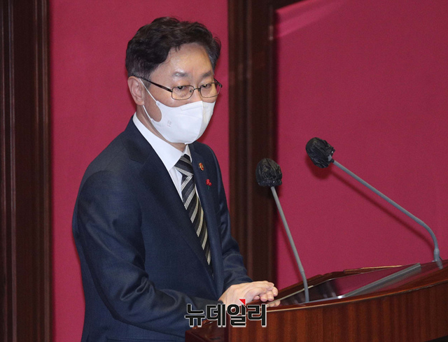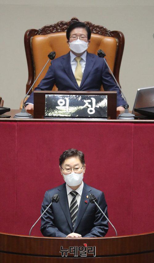 박범계 법무부 장관이 1일 오후 국회에서 열린 개회식 및 제01차 본회의에서 인사말을 하고 있다. (사진=공동취재단)