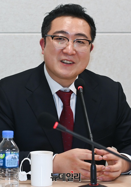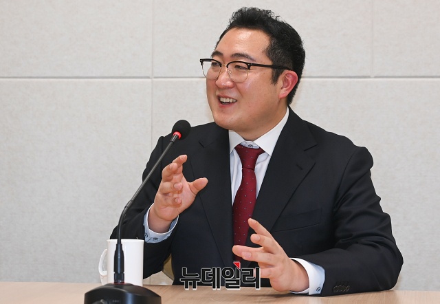 4.7 부산시장 보궐선거에 출마 선언한 전성하 LF에너지 대표이사가 29일 오후 서울 중구 뉴데일리 사무실에서 인터뷰를 갖고 있다.