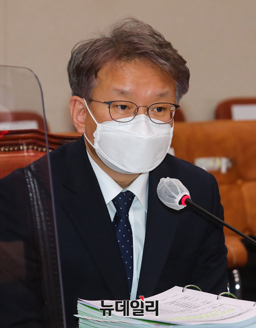 권칠승 중소벤처기업부 장관 후보자가 3일 오전 국회 산업통상자원중소벤처기업위원회에서 열린 인사청문회에서 선서를 하고 있다. (사진=공동취재단)