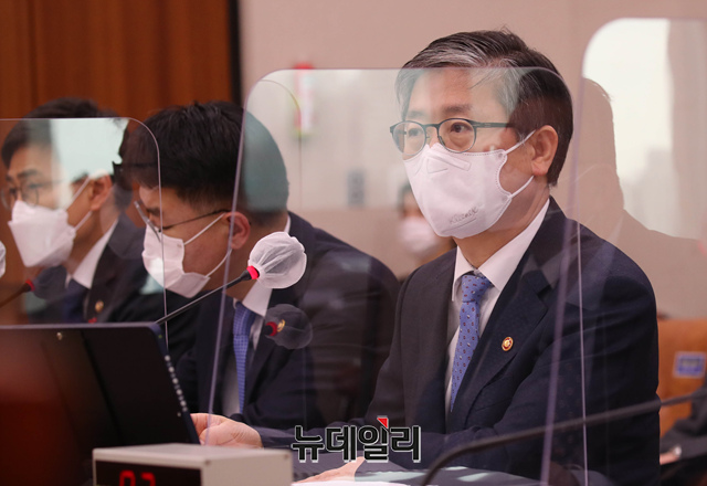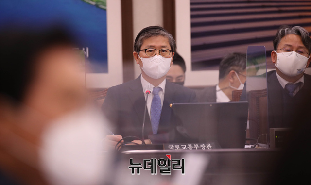 변창흠 국토교통부 장관이 3일 오후 국회 국교통위원회 전체회의에 출석해 의원 질문에 답하고 있다. (사진=공동취재단)