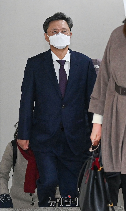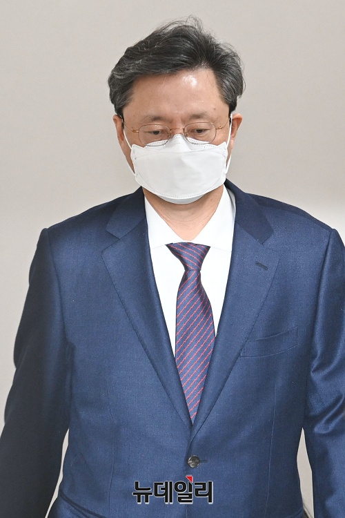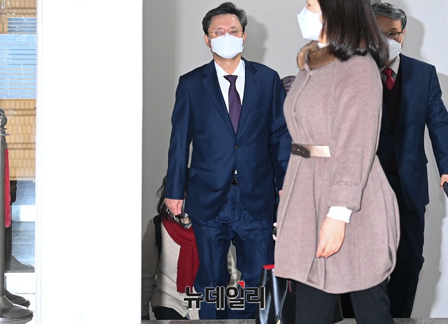 우병우 전 청와대 민정수석이 4일 오후 서울 서초구 서울고등법원에서 열린 항소심 결심공판에 출석하고 있다.