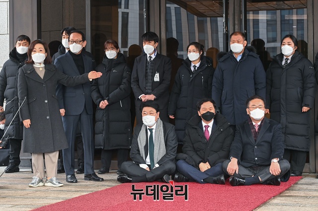 [포토] 출입제지 당하자 항의하는 국민의힘 의원들