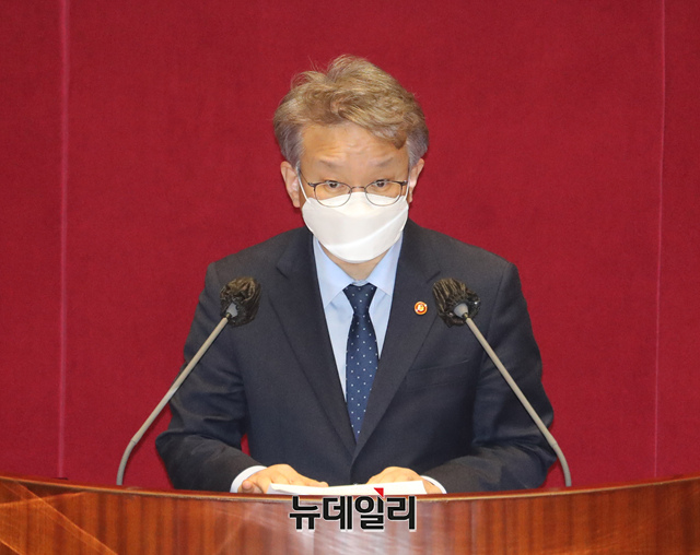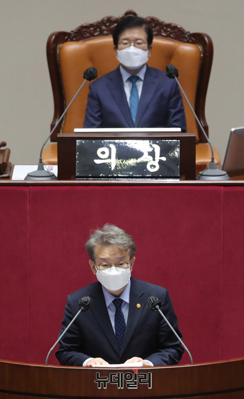 권칠승 신임 중소벤처기업부장관이 5일 오후 국회에서 열린 본회의에 출석해 인사말을 하고 있다. (사진=공동취재단)