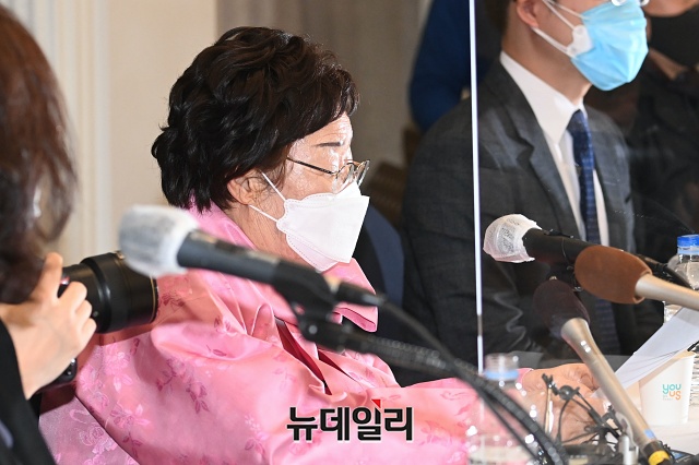 이 할머니는 "일본은 적반하장으로 우리 법원이 국제법을 위반했다고 우기고 있다. 지금도 미국에서 하버드 교수를 시켜서 거짓말을 하고 있다"라며 "우리 정부가 나서 국제법으로 일본의 죄를 밝혀달라"고 말했다.