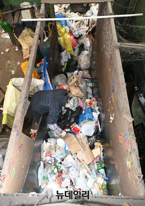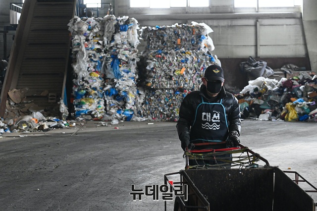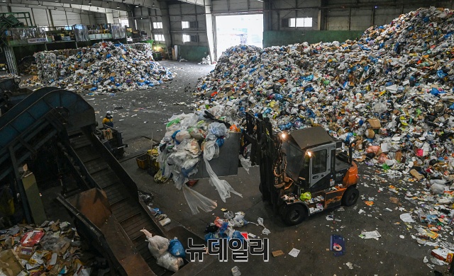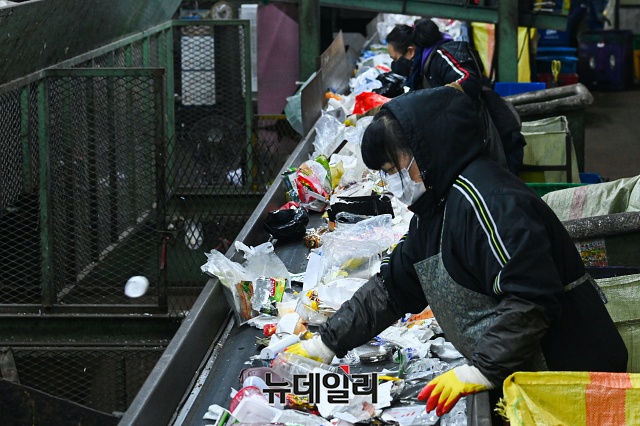 서울 송파구 송파자원순환공원에서 관계자들이 16일 오후 쓰레기 분류작업을 하고 있다.