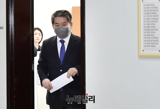 김경협 국회 정보위원장이이 17일 오전 국회에서 열린 정보위원회 전체회의에 참석하기 위해 입장하고 있다.. (사진=공동취재단)