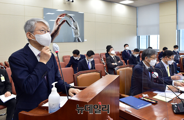 최기영 과학기술정보통신부 장관이 17일 오전 국회에서 열린 과학기술정보방송통신위원회에 출석해 업무보고를 하고 있다. (사진=공동취재단)