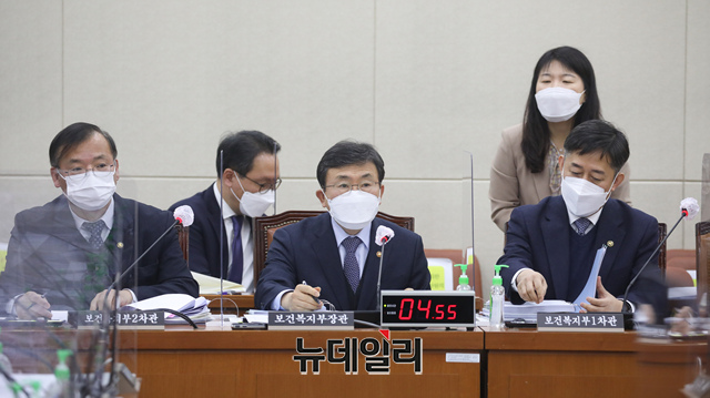 권덕철 보건복지부 장관이 17일 오전 국회에서 열린 보건복지위원회 전체회의에 출석해 의원들의 질문에 답하고 있다. (사진=공동취재단)