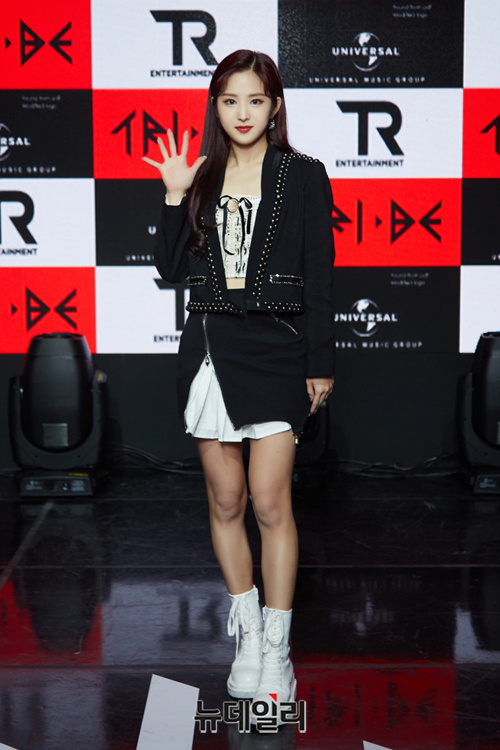 신인 걸그룹 '트라이비(TRI.BE)' 멤버 송선이 17일 오후 온라인으로 열린 첫 번째 싱글앨범 'TRI.BE Da Loca (트라이비 다 로카)' 쇼케이스에서 포토타임을 갖고 있다.트라이비는 송선, 켈리, 진하, 현빈, 지아, 소은, 미레로 구성된 평균나이 17세의 7인조 걸그룹이다. 그룹명은 완벽함의 상징인 Triangle과 존재를 뜻하는 Be의 결합으로 '완벽한 존재'를 뜻한다.이번 앨범은 신사동호랭이와 EXID 멤버 엘리(Elly)가 공동 프로듀싱을 맡았다. 타이틀곡은 아프로 비트와 뭄바톤, 하우스가 잘 어우러진 퓨처하우스 장르의 곡 '둠둠타(DOOM DOOM TA)'다.음원은 오후 6시에 공개된다. (사진=티알엔터테인먼트, 멜로우엔터테인먼트)