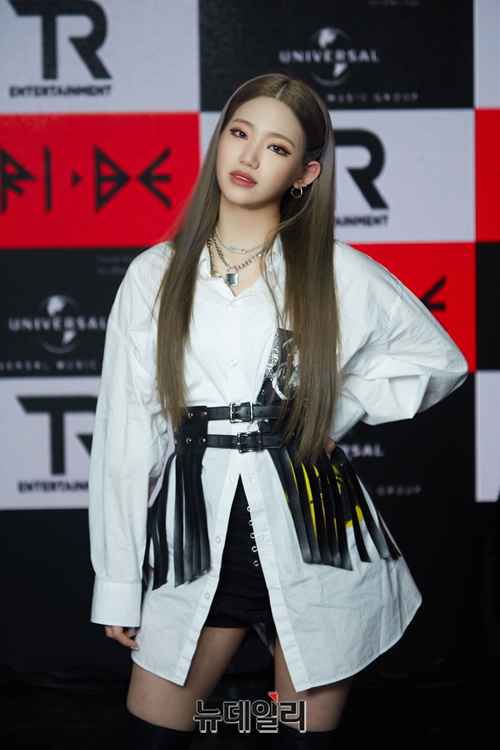 신인 걸그룹 '트라이비(TRI.BE)' 멤버 현빈이 17일 오후 온라인으로 열린 첫 번째 싱글앨범 'TRI.BE Da Loca (트라이비 다 로카)' 쇼케이스에서 포토타임을 갖고 있다.트라이비는 송선, 켈리, 진하, 현빈, 지아, 소은, 미레로 구성된 평균나이 17세의 7인조 걸그룹이다. 그룹명은 완벽함의 상징인 Triangle과 존재를 뜻하는 Be의 결합으로 '완벽한 존재'를 뜻한다.이번 앨범은 신사동호랭이와 EXID 멤버 엘리(Elly)가 공동 프로듀싱을 맡았다. 타이틀곡은 아프로 비트와 뭄바톤, 하우스가 잘 어우러진 퓨처하우스 장르의 곡 '둠둠타(DOOM DOOM TA)'다.음원은 오후 6시에 공개된다. (사진=티알엔터테인먼트, 멜로우엔터테인먼트)