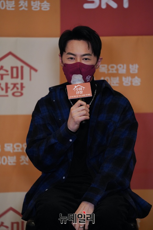가수 전진이 18일 오전 온라인으로 진행된 KBS2, SKY 공동제작 예능 '수미산장(연출 김정우)' 제작발표회에서 포토타임을 갖고 있다.
