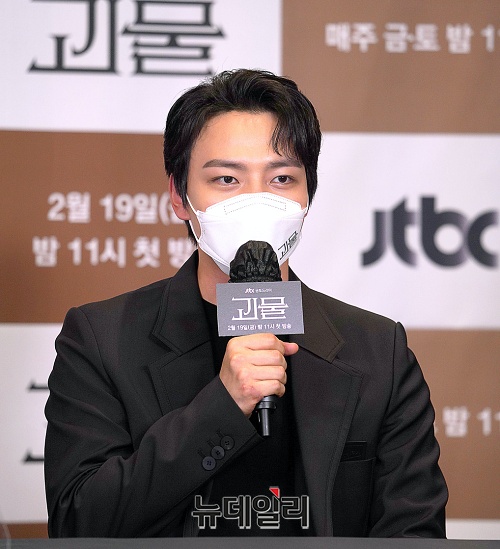 배우 여진구가 18일 오후 온라인으로 진행된 JTBC 금토드라마 '괴물(연출 심나연, 극본 김수진)' 제작발표회에서 포토타임을 갖고 있다.