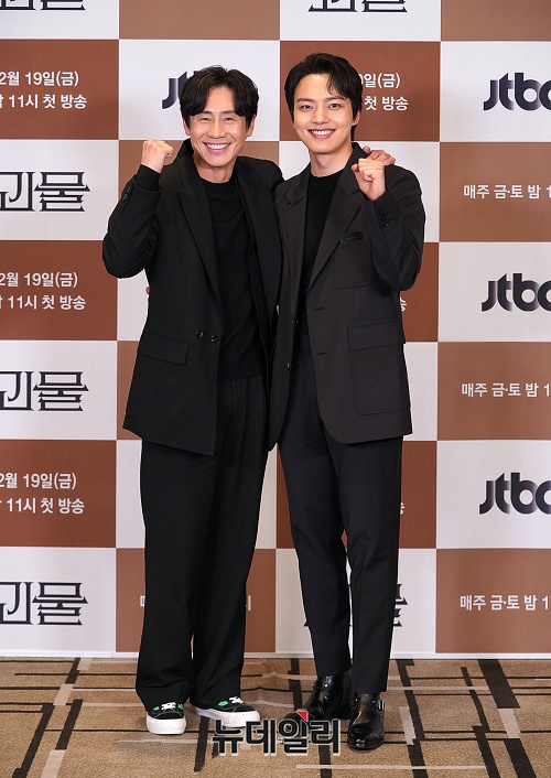 배우 신하균, 여진구가 18일 오후 온라인으로 진행된 JTBC 금토드라마 '괴물(연출 심나연, 극본 김수진)' 제작발표회에서 포토타임을 갖고 있다.