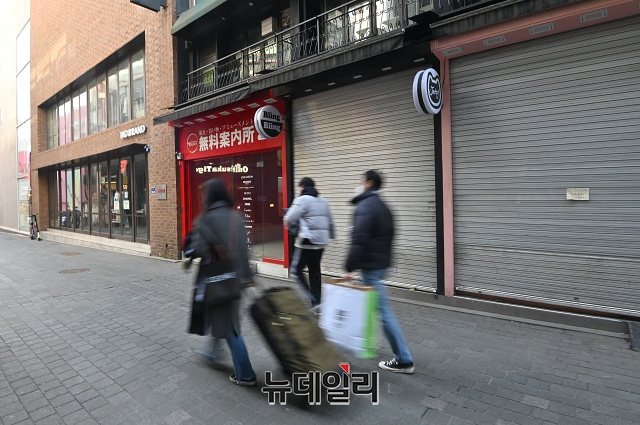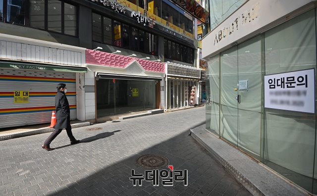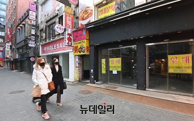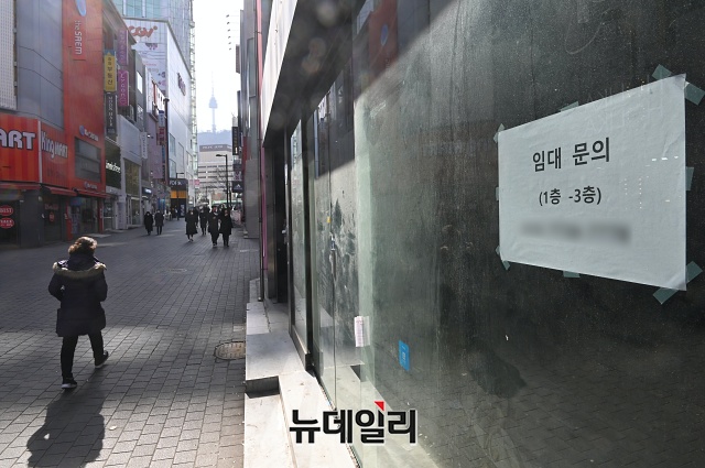 한국부동산원은 "2020년 4분기 명동 중대형 상가(3층 이상이거나 연면적 330㎡ 초과) 공실률은 22.3%로 전년 8.9%의 2.5배를 넘었다"고 밝혔다.