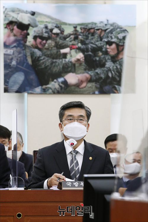 서욱 국방부 장관이 23일 오후 국회에서 열린 국회 국방위원회 전체회의에서 모두발언을 하고 있다. (사진=공동취재단)