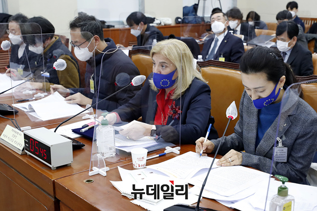 마리아 카스티요 페르난데즈 주한 유럽연합 대사가 25일 오전 국회 환경노동위원회에서 열린 탄소중립이행법안 마련을 위한 입법 공청회에서 발언하고 있다. (사진=공동취재단)