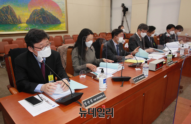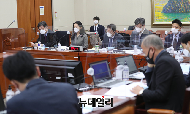 전자금융거래법 개정안에 관한 공청회가 25일 오전 국회 정무위원회 전체회의에서 열리고 있다. (왼쪽부터 정순섭 서울대 법학전문대학원 교수, 양기진 전북대 법학전문대학원 교수, 안동현 서울대 경제학부 교수, 정중호 하나금융경영연구소장, 류영준 핀테크산업협회장, 류재수 금융경제원 상무이사) (사진=공동취재단)